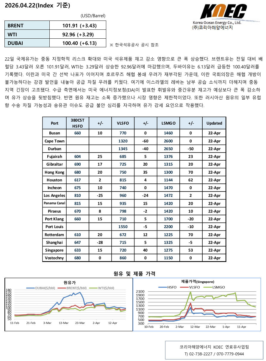 BUNKER PRICE (04.22)